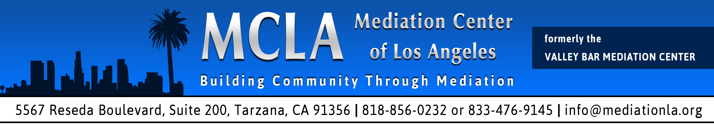 The Mediation Center of Los Angeles (MCLA) is a 501(c)(3) tax-exempt non-profit organization committed to educating the public about the benefits of mediation. Our primary charitable goal is to build community through mediation and peacebuilding. MCLA’s educational programs focus on helping communities learn how to resolve disputes in a peaceful manner. Our work enhances understanding among diverse groups to manage problems and work toward lasting solutions.